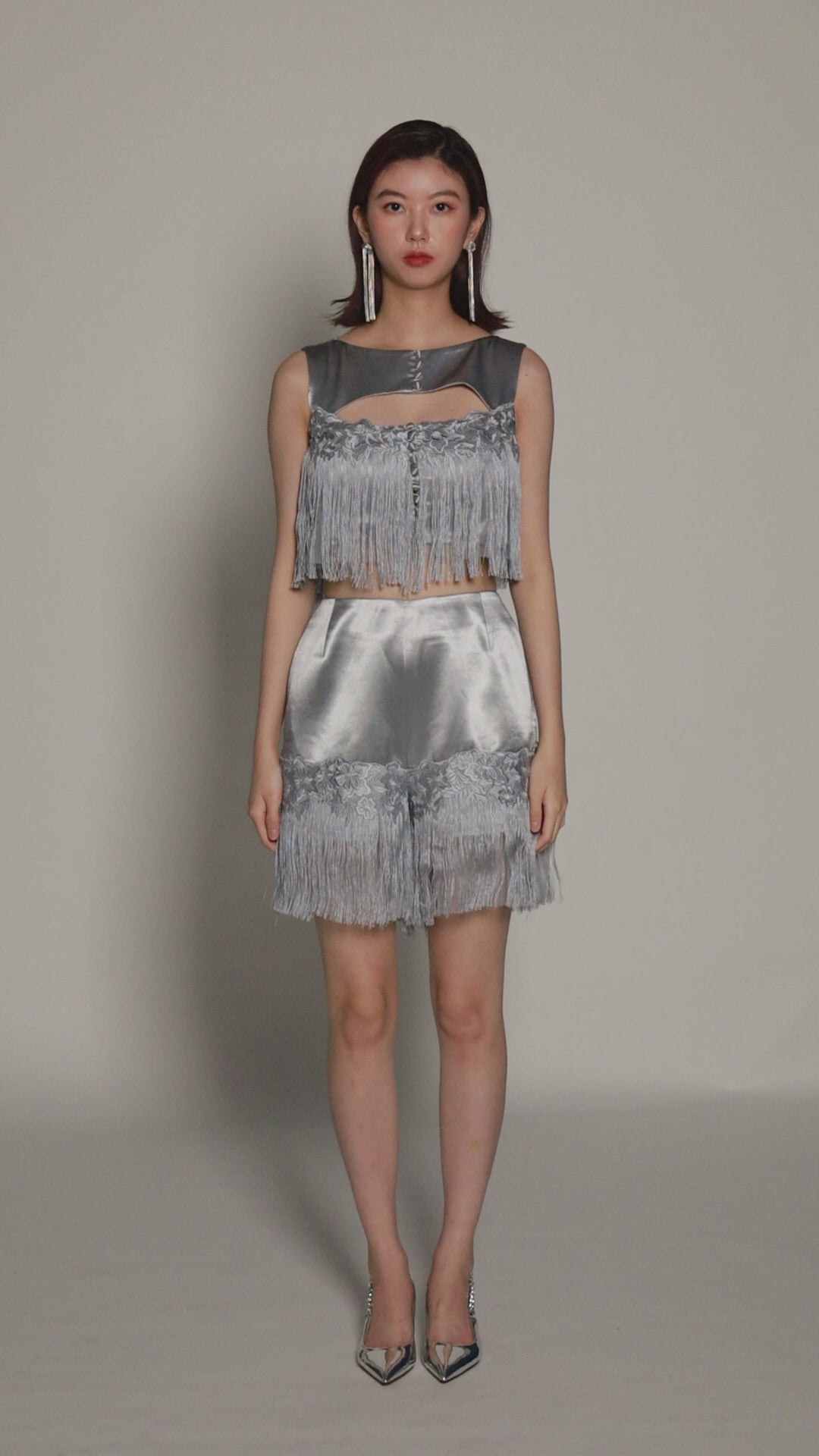 • The Fringe short pant is made of skin friendly acetate fabric with embroidered fringe on top.