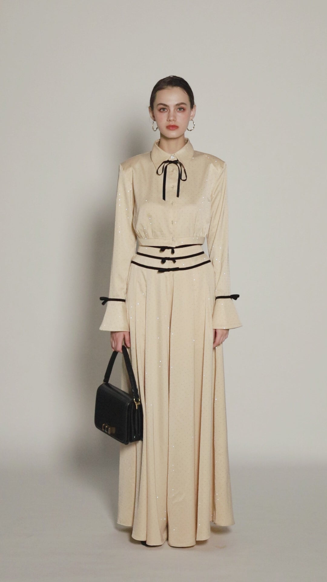 • Made with high-quality rhinestone fabric, they emit a mesmerizing glow that adds a unique charm to your style. The triple-layer bow detail at the waist is a highlight of these pants
